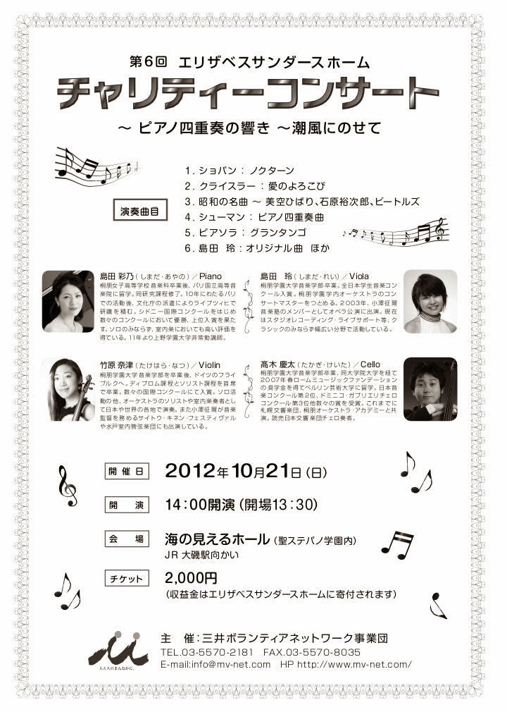 昨年のアンケートにより、日本の曲も聴きたいというご意見をいくらか頂戴し、今回は島田彩乃・玲姉妹が自身の手で!いくつかの曲をピアノ四重奏の編成用にアレンジしてくれました!