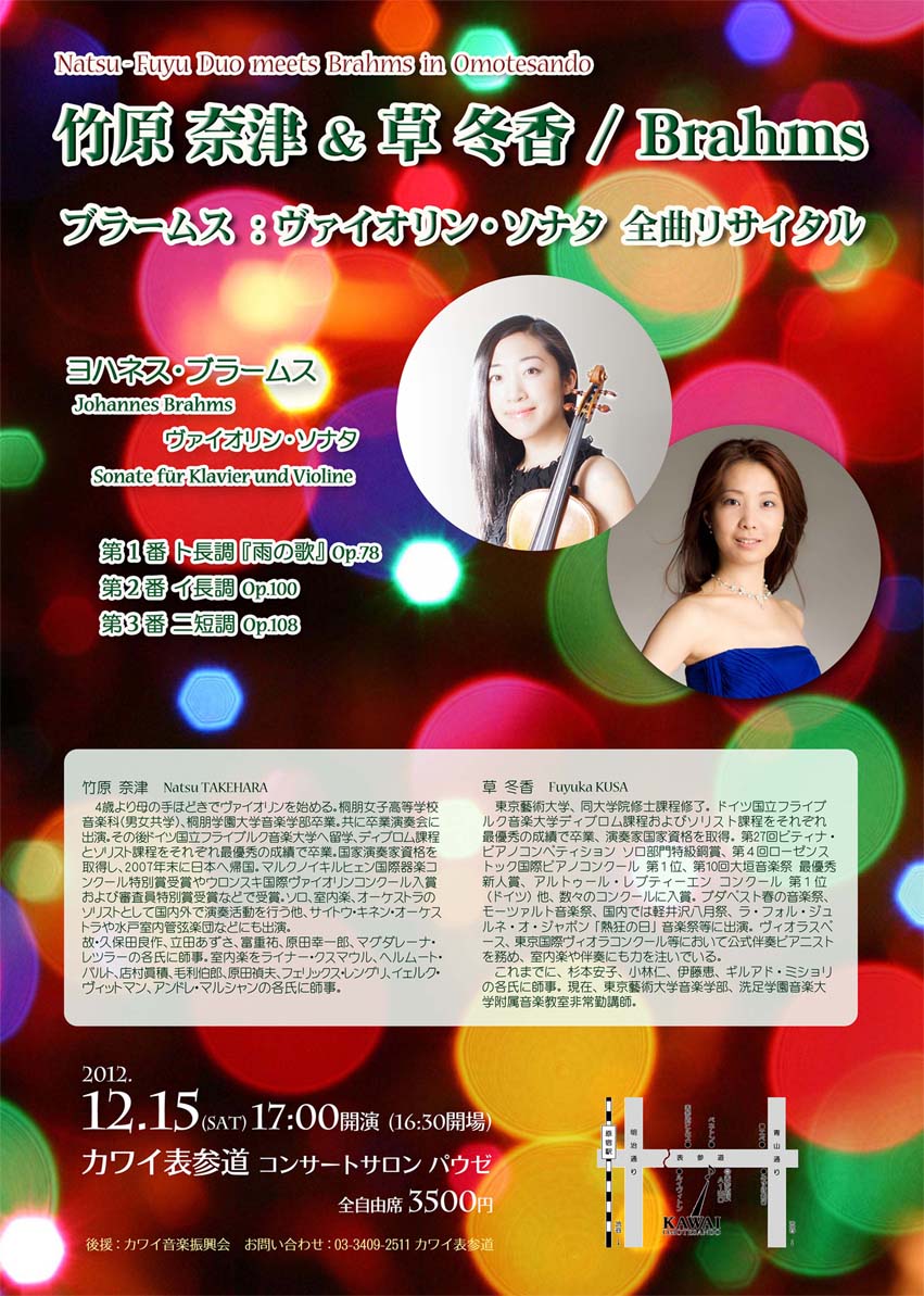 『竹原奈津&草冬香/ブラームス:ヴァイオリンソナタ全曲リサイタル』