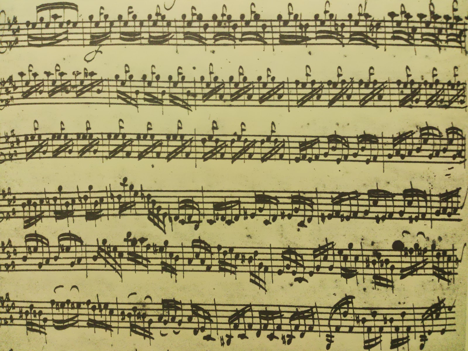 写真はバッハの直筆譜の一部です(無伴奏パルティータ第3番BWV1006のプレリュード)。